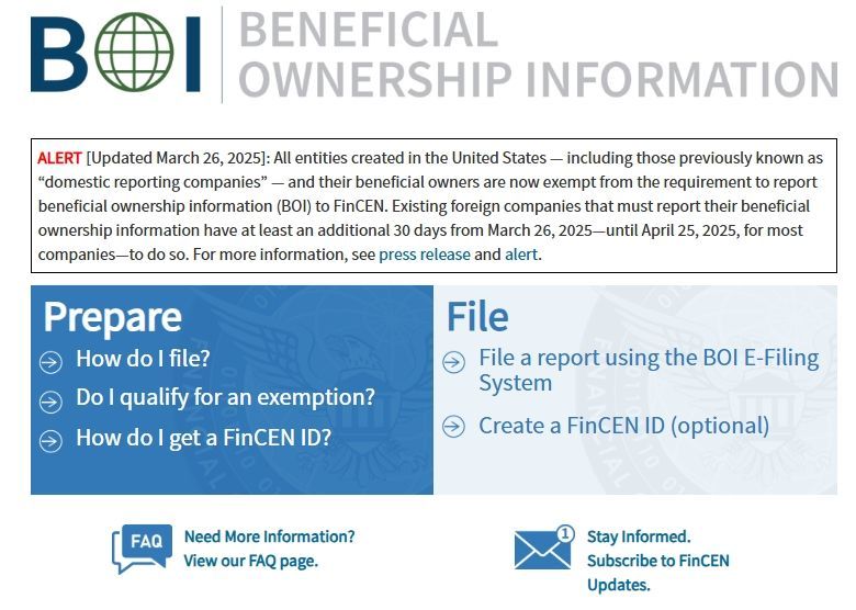 See official notice and our BOI FAQ below. Get the latest updates at FinCEN.gov